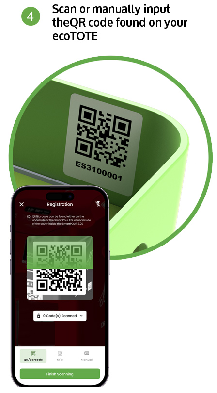 Each ecoTOTE has a unique QR code. Scan these codes with the CircularONE app to assign any ecoTOTEs you receive to your outlet.